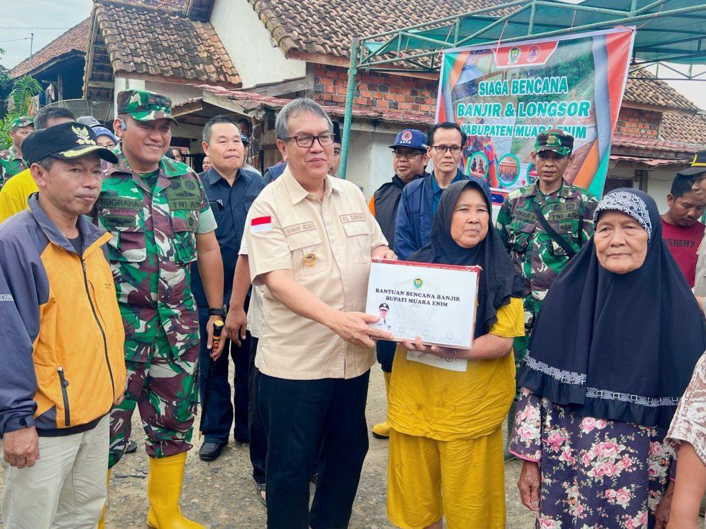 Pj. Bupati yang hadir bersama Dandim 0404 Muara Enim, Letkol. Inf. Nugraha, S.H., M.I.P., didampingi Asisten Pemerintahan & Kesejahteraan Rakyat, Drs. H. Emran Tabrani, M.Si., menjelaskan bahwa Pemkab. Muara Enim telah memetakan wilayah terdampak dan rawan banjir serta mengerahkan personel gabungan, baik dari perangkat daerah maupun TNI dan Polri dalam menghadapi bencana banjir. Dijelaskan setidaknya dalam tanggap bencana saat ini Pemkab. Muara Enim menyalurkan paket bahan makanan pokok berupa 5 Kg beras, 1 liter minyak, 1 Kg gula pasir, 1 kardus mie instan, 1 kardus air mineral, termasuk makanan penunjang bayi dan ibu hamil kepada warga terdampak. Selain itu Pj. Bupati juga menginstruksikan pendirian Posko bencana di setiap kecamatan, menyiagakan Puskesmas, penyaluran air bersih dari PDAM maupun Damkar, serta pendirian dapur umum dan tenda pengungsi bagi desa-desa yang terdampak parah.
