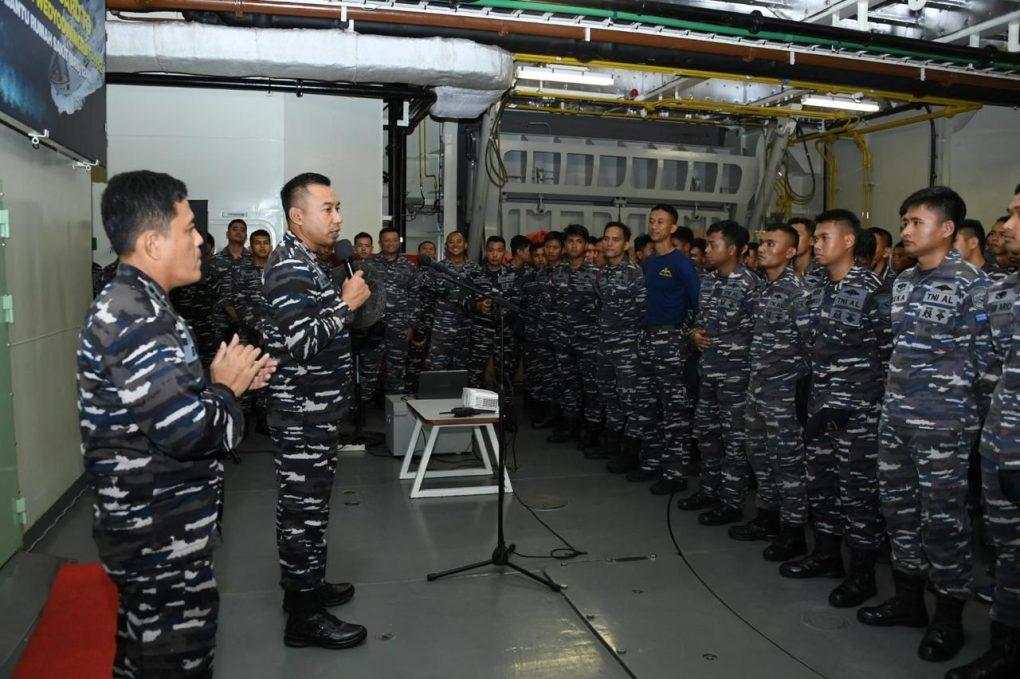 Lebih lanjut Dansatgas juga menjelaskan untuk mencapai tugas pokok TNI AL, perlu adanya team work (kerjasama tim). “Mari kita jaga dan rawat kapal ini agar tetap dapat melaksanakan tugas pokoknya dengan sebaik-baiknya”, pesan Laksamana Pertama TNI Sumarji Bimoaji.