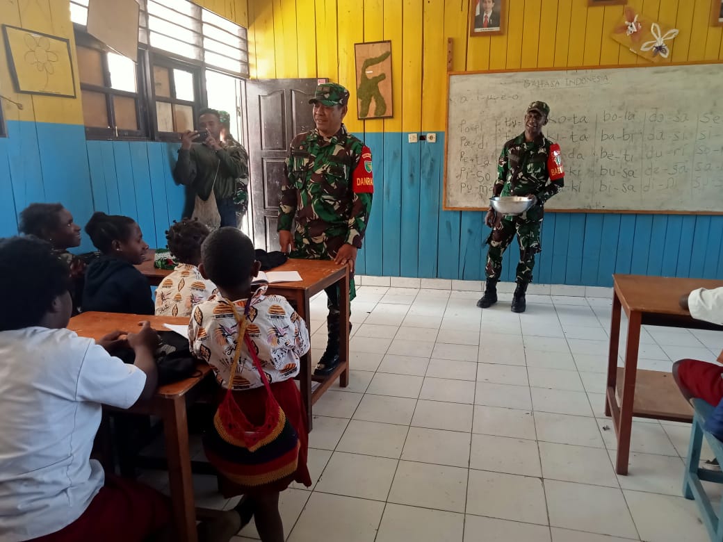 REPORTASE JAKARTAPuncak Jaya – Dalam rangka untuk membangkitkan semangat belajar, meningkatkan mutu pendidikan, serta meningkatkan kualitas dan kuantitas generasi anak bangsa, Danramil 1714-01/Mulia beserta Babinsa mengunjungi SD YPGGI Mulia membagikan berkat berupa telur matang kepada siswa SD YPPGI Mulia yang bertempat di Kampung Pepera Distrik Mulia, Kab Puncak Jaya, Papua, Senin (22/1/2024).