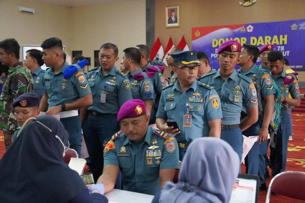 Jakarta, 23 Januari 2024 — Dalam rangka menyambut peringatan HUT ke-78 Polisi Militer Angkatan Laut (Pomal) yang akan dilaksanakan pada tanggal 20 Februari 2024 mendatang, TNI Angkatan Laut (TNI AL) dalam hal ini Pusat Polisi Militer Angkatan Laut (Puspomal) menggelar kegiatan Donor Darah, bertempat di Gedung RB Soepardan, Puspomal, Kelapa Gading, Jakarta Utara, Selasa (23/01). Kegiatan donor darah ini juga dilaksanakan secara serentak oleh seluruh jajaran Pomal yang berada di penjuru nusantara, berkolaborasi dengan Perhimpunan Donor Darah Indonesia (PDDI) dan Palang Merah Indonesia (PMI). Komandan Puspomal (Danpuspomal) Laksamana Muda TNI Samista, S.H didampingi oleh Ketua Umum PDDI Komisaris Jenderal Polisi (Purn) Adang Daradjatun, Wakil Ketua Umum PDDI Bapak Anto Jangkar menyampaikan bahwa kegiatan ini bertujuan untuk mensosialisasikan pentingnya donor darah yang dapat meningkatkan rasa kepedulian sosial seluruh jajaran Pomal. Kegiatan donor darah di Puspomal diikuti lebih dari 560 peserta dari jumlah total kurang lebih 5000 peserta di seluruh jajaran Pomal seluruh Indonesia. Hal ini merupakan bentuk kepedulian Pomal dalam hal kemanusian yang diharapkan dapat menyediakan pasokan darah yang memadai untuk membantu saudara-saudara kita yang membutuhkan. Pada kesempatan terpisah, Kepala Staf Angkatan Laut (Kasal) Laksamana TNI Dr. Muhammad Ali menyampaikan kepada seluruh jajaran TNI AL bahwa TNI AL berkomitmen untuk memberikan manfaat yang besar bagi masyarakat, dalam hal ini kegiatan donor darah yang dapat membantu masyarakat yang sedang membutuhkan atau mengalami kesulitan. (Red).