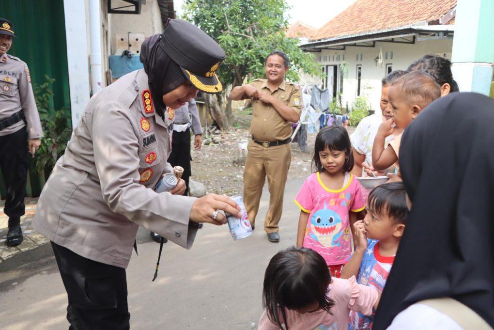 Kali ini, Kombes Pol Sumarni, S.I.K, S.H, M.H, menyalurkan bantuan berupa paket sembako dan makanan bergizi kepada anak asuh stunting di wilayah Kelurahan Gegunung, Kecamatan Sumber, Kabupaten Cirebon. Bantuan serupa juga diberikan kepada seluruh anak asuh stunting Polresta Cirebon.