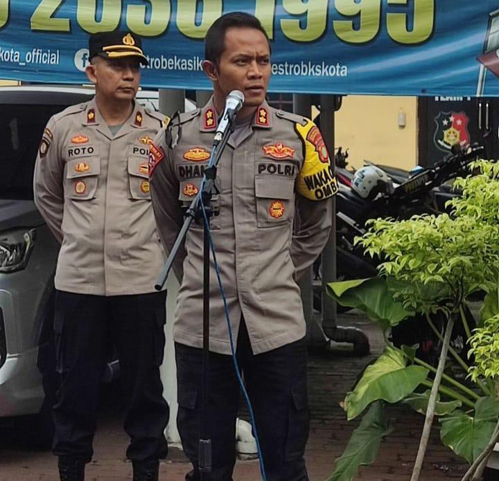 REPORTASE JAKARTABEKASI – Wakapolres Metro Bekasi Kota AKBP Dhany Aryanda S.I.K mengambil pimpinan Apel pagi Polsek Jatiasih didampingi Kapolsek Jatiasih sebelum melaksanakan kegiatan tugas dalam memberikan pelayanan kepada masyarakat.