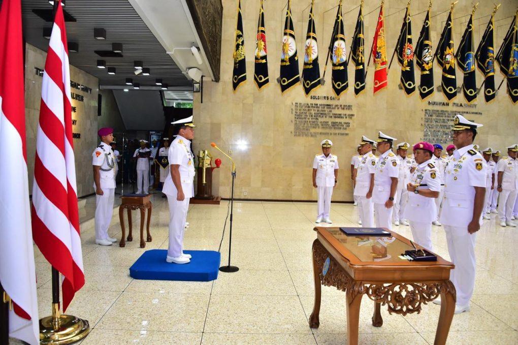 Jakarta, 13 Februari 2024 — Sebagai wujud pembinaan suatu organisasi, perlu dilaksanakan rotasi jabatan dan kepemimpinan. Oleh sebab itu Kepala Staf Angkatan Laut (Kasal) Laksamana TNI Dr. Muhammad Ali secara resmi memimpin Acara Serah Terima Jabatan Kadisminpersal dan Dandenma Mabesal, yang berlangsung di Lobby Gedung R.E. Martadinata Mabesal, Cilangkap, Jakarta Timur, Selasa (13/02). Pada kesempatan tersebut, jabatan Kadisminpersal diserahterimakan dari Laksma TNI Ashari Alamsyah, CHRMP. kepada Laksma TNI Uki Prasetia, S.T., M.M. yang sebelumnya menjabat sebagai Dosen Ahli Latgab Sesko TNI. Selanjutnya Laksma TNI Ashari Alamsyah, CHRMP. mengemban amanat sebagai Staf Khusus Kasal. Selanjutnya jabatan Dandenma Mabesal diserahterimakan dari Kolonel Marinir Jasiman Purba, S.E., CHRMP. kepada Kolonel Laut (P) Dr. Aria Delano, S.E., M.Pd., M.Han. yang sebelumnya menjabat sebagai Kas Guspurla Koarmada III. Selanjutnya Kolonel Marinir Jasiman Purba, S.E., CHRMP. menjabat sebagai Komandan Lantamal I Belawan. Kasal menyampaikan ucapan terima kasih kepada pejabat lama yang telah menunjukkan upaya konkrit yang mengesankan dalam menjalankan tugas. Prestasi yang telah dicapai merupakan hasil dari dedikasi, kerja keras, dan kepemimpinan. Sementara itu kepada pejabat yang baru, Kasal mengucapkan selamat telah memperoleh amanah dan kepercayaan untuk meneruskan kepemimpinan organisasi. “Saya yakin dengan kapasitas yang dimiliki, para pejabat akan mampu mengemban amanah dengan baik”, ujar Kasal. Rotasi kepemimpinan ini merupakan manifestasi dari proses pembinaan personel secara berkesinambungan dan menyeluruh. Adanya pergantian jabatan, diharapkan mampu memberikan kesempatan bagi tiap individu untuk membawa ide-ide segar, perspektif baru serta energi baru dalam menjalankan tugas dan tanggung jawab organisasi. (Red).