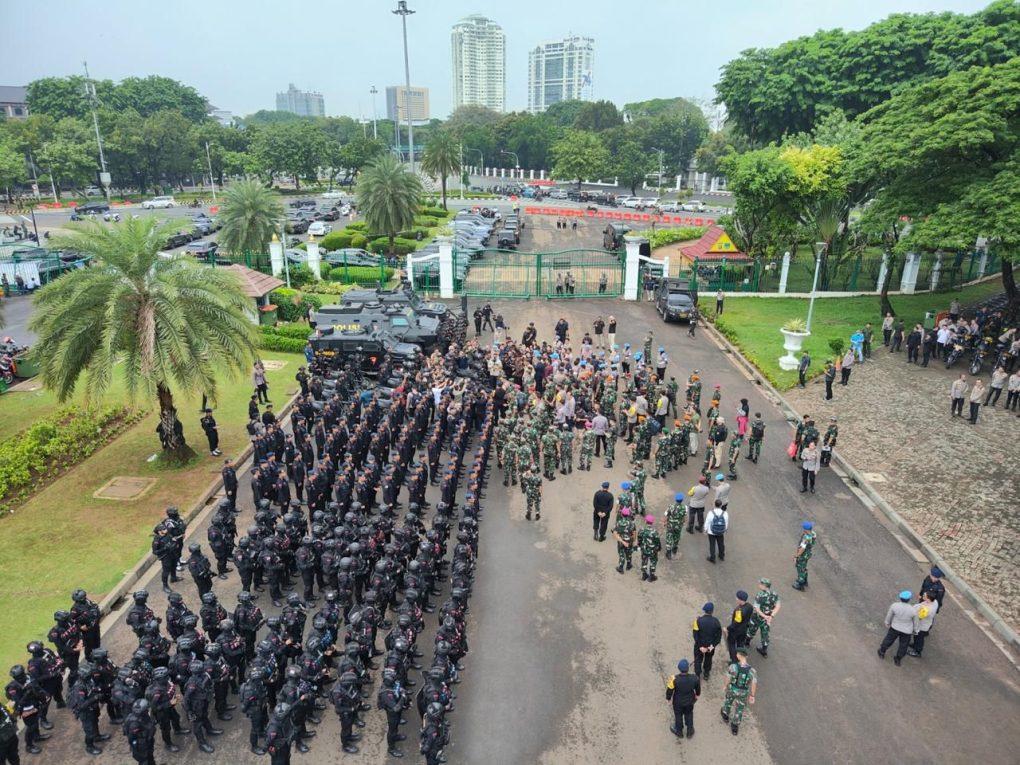 Jakarta, 15 Februari 2023 — Guna meningkatkan keamanan dan kesiapsiagaan saat pelaksanaan Pemilu 2024, Kepala Staf Angkatan Laut (Kasal) Laksamana TNI Dr. Muhammad Ali hadir dalam Apel Siaga Kesiapan Pengamanan Pemilu 2024, bersama Panglima TNI Jenderal TNI Agus Subiyanto, S.E., M.Si. dan Kapolri Jenderal Pol Listyo Sigit Prabowo, di Lapangan Silang Monas, Jakarta, Rabu (14/02). Kegiatan Apel Pengamanan Pemilu diikuti sekitar 1.500 personel gabungan TNI-Polri yang secara keseluruhan melibatkan tiga matra TNI-Polri dengan total 260.000 personel dan tersebar di seluruh wilayah Indonesia. Di hadapan awak media, Panglima TNI menyampaikan bahwa TNI mengerahkan 90 ribu prajurit di seluruh Indonesia. Tercatat di Jakarta mengerahkan 10 ribu (personel), yang tersebar di TPS-TPS, dan sebagian standby force. Sampai saat ini pengerahan prajurit TNI untuk pengamanan Pemilu secara umum berjalan cukup lancar. “Tadi malam kita sudah patroli bersama, dan alhamdulillah aman. Hanya ada beberapa TPS yang susulan seperti di Demak dan wilayah Indonesia yang terkena bencana. Jadi nanti akan dilaksanakan pencoblosan susulan ataupun relokasi wilayah. Kita harapkan pencoblosan hari ini berjalan dengan lancar dan aman, tentunya didukung oleh seluruh masyarakat Indonesia juga”, pungkas Panglima TNI. Apel Kesiapan Pasukan Pengamanan Pemilu 2024 juga dihadiri oleh Kepala Staf Angkatan Darat (Kasad) Jenderal TNI Maruli Simanjuntak, M.Sc. dan Kepala Staf Angkatan Udara (Kasau) Marsekal TNI Fadjar Prasetyo, S.E., M.P.P., CSFA. Kegiatan dilanjutkan dengan pemantauan langsung ke Posko Pengamanan Pemilu 2024 guna memastikan pelaksanaan pemungutan suara berjalan dengan aman, lancar, dan kondusif. Sejumlah kekuatan telah dilibatkan oleh TNI AL dalam menyukseskan pesta demokrasi tersebut, tercatat disejumlah wilayah TNI AL telah mengerahkan personel maupun unsurnya untuk mendukung Pemilu 2024. Sebanyak Satu Satuan Setingkat Batalyon (SSY) dari Pasmar 1 Jakarta telah di BKO ke jajaran Mabes TNI atas instruksi Panglima TNI. Selain itu sejumlah Pangkalan TNI AL (Lanal) di sejumlah kota seperti Lanal Cilacap, Lanal Tegal, dan Lanal Semarang tergabung dalam satuan tugas pengamanan Pemilu yang di BKO ke Kodam IV/ Diponegoro. Bukan hanya melibatkan pasukan dalam pengamanan Pemilu 2024, melainkan TNI AL juga mendukung sejumlah unsur-unsur lainnya antara lain KRI, KAL, dan Patkamla guna pendistribusian logistik serta petugas penyelenggara Pemilu ke sejumlah wilayah di tanah air yang tidak terjangkau melalui akses darat maupun udara. (Red).