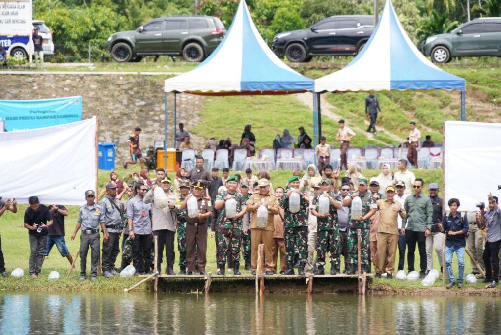 Danrem 012/TU bersama unsur Forkopimda Abdya dan para geuchik melakukan penanaman 1.000 pohon secara simbolis dan pelepasan 5.000 benih ikan Nila di sungai Krueng Beukah, tepatnya di bendungan irigasi Desa Panton Kecamatan Blangpidie, Kabupaten Abdya.