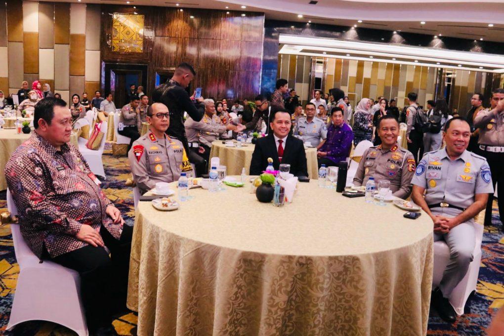 PLH Sesditjen Bina Keuangan Daerah Kemendagri Dr. Hendriawan Msi, PJ Gubernur Sumatera Selatan Dr. Drs. H.A.Fatoni Msi, Kapolda Sumsel Irjen A Rachmad Wibowo Sik, Dir Regident Korlantas Polri Brigjen Yusri Yunus Sik, para Kabapenda dan Direktur Lalulintas (Sumsel, Jabar, Sumut, Banten, Kep Babel, Jambi, Bengkulu dan Lampung). (Yogie Kaperwi Sumsel). Kakorlantas Polri Irjen Aan Suhanan mengatakan kegiatan yang dilaksanakan sebagai tindaklanjut dari hasil rapat koordinasi di Bandung beberapa waktu lalu. โPada rakor di Bandung telah menghasilkan kesepakatan lima rekomendasi terkait pelaksanaan kesamsatan di Indonesia. Saya dari tim pembina Samsat Nasional, PJ Gubernur sekaligus Dirjen Bina Keuangan Daerah, kemudian pak Dirut Jasaraharja, hari ini kita melaksanakan rapat koordinasi Pembina Samsat seluruh Indonesia. Ini dilaksanakan secara daring maupun secara fisik. Beberapa tim Pembina Samsat daerah hadir disini (Palembang) ini,โ ujar Kakorlantas. โKelima rekomendasi tersebut mulai dari validitas data, akan kita bangun data yang valid dan disinergikan. Kemudian peningkatan pelayanan kesamsatan di seluruh Indonesia. Kemudian kita akan memberikan relaksasi di masing-masing samsat di seluruh Indonesia.