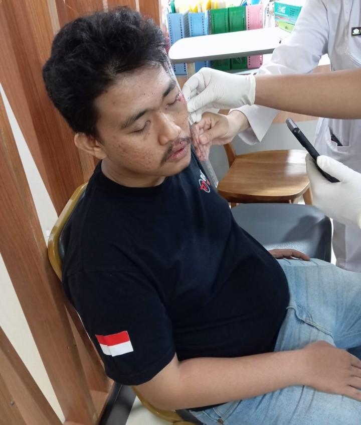 Ketua DPC GMNI Bekasi pun menceritakan awal kejadian dirinya dan kawannya di kroyok oleh pegawai setempat dan satu orang warga negara asing. “Awalnya kawan saya yang namanya Putri melintas di depan tempat duduk orang asing (bule). Kawan saya putri di colek payudaranya. Di tegur sama kawan saya satunya yang namanya Nico. Orang asing itu melawan dan saya datangi lagi. Saya adu debat dengan orang asing itu,” kata Cris sapaan akrabnya menceritakan kejadian semalam yang membuat dirinya luka-luka kepada awak media Bekasi, Minggu (25/2). Saat dirinya debat dengan bule. Lanjut dia. Malah karyawan Cafe Koma Junkyard membela bule. Adu debat dorong-dorongan, langsung dirinya di kroyok oleh karyawan setempat kurang lebih 10 orang yang mengeroyok dirinya dan kawan-kawannya. “Ya, yang luka parah saya. Saya di kroyok 10 orang. Sedangkan saya nongkrong lima orang 2 perempuan 3 laki-laki. Karena saya sudah babak belur tidak ada yang membela langsung saya dan kawan-kawan pergi untuk melaporkan kejadian yang kita alami ke kantor polisi,” ucapnya. Setelah mendapatkan pengeroyokan, ia mengaku, langsung lapor polisi dan dirinya melakukan visum. Pihak kepolisian juga sudah melakukan oleh TKP dan menangkap bule. Sedangkan orang-orang yang mengeroyok dirinya belum dilakukan penangkapan. “Bule sudah di tahan polisi. Karena dia pelaku awal yang melakukan pelecehan terhadap kawan saya. Sementara karyawan yang mengeroyok saya sedang di cari oleh pihak kepolisian,” ujarnya. Dirinya memastikan, bahwa yang mengeroyok dirinya sebagian besar adalah karyawan Cafe Koma Junkyard. Ia harap pihak kepolisian bisa menangkap seluruh pelaku yang melakukan pengeroyokan kepada dirinya dan kawan-kawannya. “Saya harap polisi segera menangkap pelaku yang mengeroyoknya saya dan kawan-kawan saya,” harapnya. Sementara, kondisi Cris usay di kroyok mengalami sejumlah luka di bagian mata lebab, Bibir pecah, Alis sobek dan sejumlah luka di badannya. (Red).
