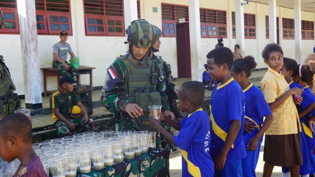 REPORTASE JAKARTAPapua – Maybrat sebagai wujud kepedulian terhadap tumbuh kembang anak-anak, Satgas Yonif 133/YS melaksanakan program Yudha Sakti Sahabat Anak. Kali ini program tersebut diaplikasikan melalui kegiatan pembagian roti dan bubur kacang secara gratis kepada anak-anak serta olahraga bersama di Sekolah Dasar YPK Emaus, Kampung Susumuk, Distrik Aifat, Kabupaten Maybrat-Papua Barat Daya, Sabtu (24/02/2024)