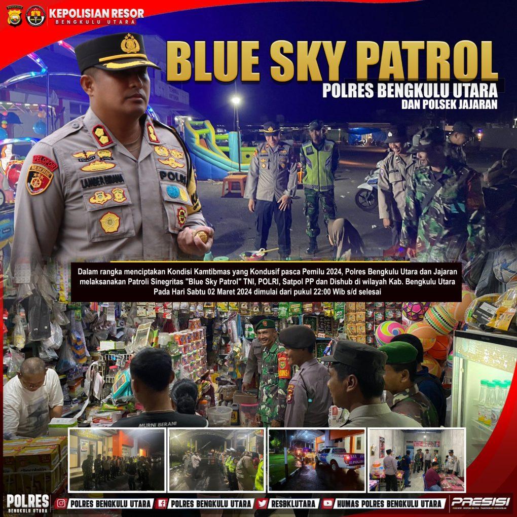 Kapolres Bengkulu Utara AKBP Lambe Patabang Birana SIK MH mengatakan, Kegiatan Patroli Sinegritas “Blue Sky Patrol” TNI, POLRI, Satpol PP dan Dishub ini akan rutin dilaksanakan oleh Polres Bengkulu Utara dan Jajaran. Kegiatan sasaran patroli yaitu aktivitas masyarakat pengguna jalan, arus lalu lintas, serta antisipasi tindak kriminal, balap liar dan sambang objek vital tertentu.
