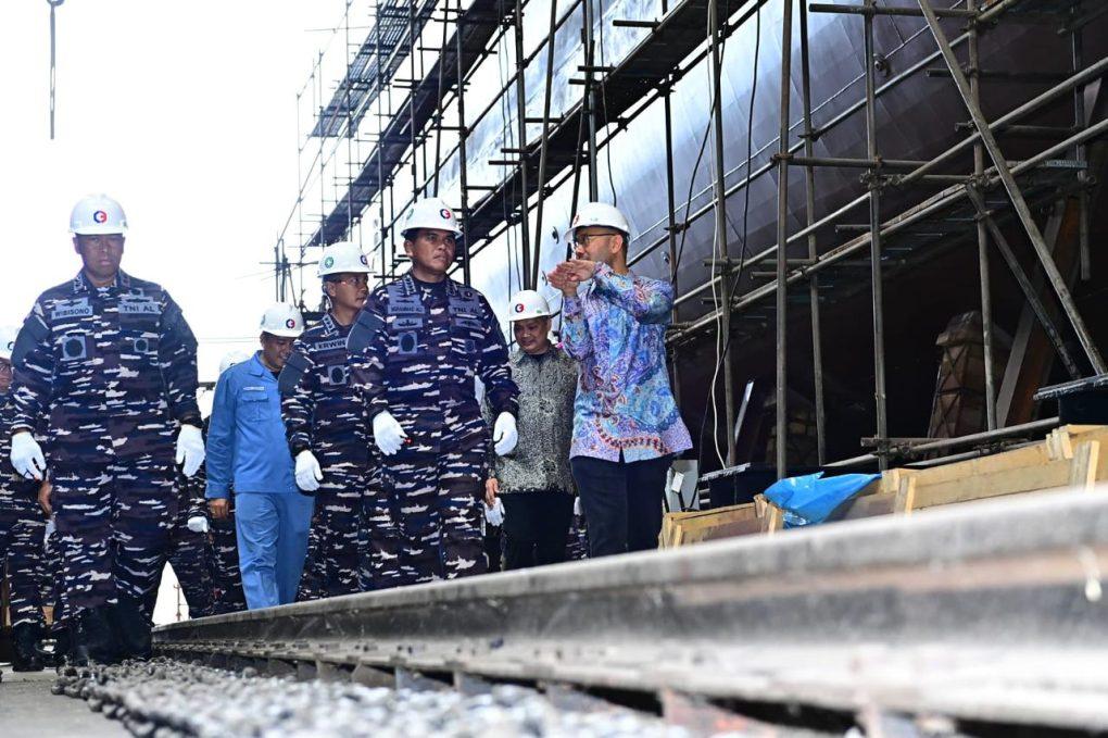 Jakarta, 05 Maret 2024,–– TNI Angkatan Laut akan kembali menambah kekuatan Alat Utama Sistem Persenjataan (Alutsista) berupa dua unit Kapal Perang Patroli Cepat (PC) 60 Meter melalui Satuan Tugas Proyek Pengadaan Dalam Negeri (Satgas Yekda DN) Kapal PC 60 yang ditinjau langsung oleh Kepala Staf Angkatan Laut (Kasal), Laksamana TNI Dr. Muhammad Ali di Galangan PT. Caputra Mitra Sejati (CMS), Serang, Banten, Selasa (05/03). Peninjauan ini diawali dengan sambutan oleh Direktur Utama PT. CMS Bapak Kriss Pramono yang dilanjutkan paparan fasilitas galangan oleh Project Leader, Bapak M.Ghufron dan safety induction oleh Manager HSE PT CMS, Ibu Ambar Setyowati, serta paparan laporan kemajuan pembangunan Kapal PC 60 oleh Dansatgas, Kolonel Laut (P) Sigit Pujiman Catur Ap., M. Tr. Hanla., M.M. yang menyampaikan bahwa pembangunan PC 60 ini berjalan dengan baik ditandai dengan hasil pencapaian progress riil sebesar 76,67% dari perencanaan sesuai kontrak sebesar 75,42% sehingga memperoleh nilai deviasi positif pembangunan sebesar 1,25%. Dalam kegiatan tersebut, Kasal menyebutkan bahwa dengan kunjungan kerja ini, dapat ditunjukkan secara langsung pembangunan Kapal PC 60, selain itu Kasal juga menyampaikan terima kasih atas progress yang sudah diberikan kepada TNI AL. “Terima kasih kepada PT. Caputra Mitra Sejati yang dengan baik memproduksi, kunker ini bertujuan untuk melihat proyek kita PC 60 M, semoga kerja sama ini berjalan dengan baik dan dapat ditingkatkan sehingga bisa mendukung produksi Alutsista TNI AL”, ujar Kasal. Seusai menerima paparan, Kasal melanjutkan kegiatan dengan melaksanakan peninjauan langsung ke workshop tempat produksi Kapal PC 60 untuk mengetahui proses pembuatan, melihat fasilitas pendukung yang terdiri dari ruang kelas pelatihan dan messing bagi calon pengawak (Cawak) kapal PC 60. Kapal yang memiliki panjang 61,20 M, lebar 8,5 M dan tinggi 4,95 M ini dipersenjatai dengan 1 X Mer 40 mm Marlin ILOS dan 2 X Senjata Metraliur 12,7 mm. Kapal PC 60 ini akan diluncurkan pada bulan Mei 2024 dan direncanakan rampung pada November 2024 mendatang. Sebelumnya, PT CMS juga memproduksi Alutsista Kapal Perang TNI Angkatan Laut yang meliputi KRI Cakalang-852, KRI Kurau-856, KRI Albakora-867, KRI Bubara-868, KRI Gulamah-869, KRI Posepa-870, KRI Escolar-871, KRI Dorang-874 dan KRI Bawal-875. Turut hadir dalam peninjauan tersebut diantaranya Wakasal, Irjenal, Asrena Kasal, Aslog Kasal, Askomlek Kasal, Danlantamal III Jakarta, Kadislaikmatal, Kadiskomlekal, dan Kadisadal, serta Danlanal Banten. (Red).