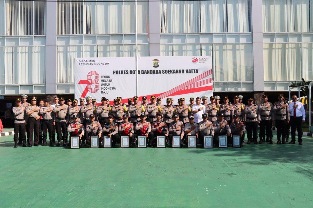 Kapolresta Bandara Soekarno-Hatta Kombes Pol. Roberto Pasaribu yang memimpin apel pemberian penghargaan menyampaikan bahwa penghargaan ini merupakan komitmen Polri dalam menjalankan sistem reward and punishment.