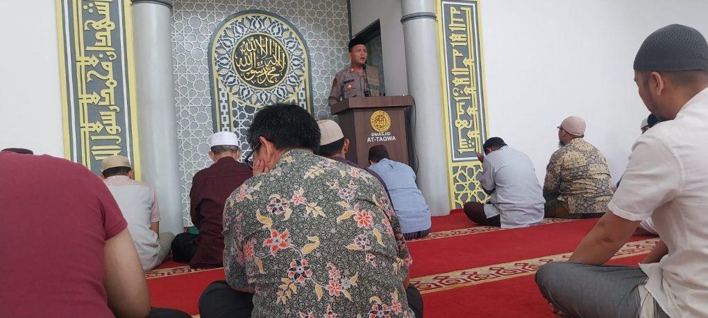 Kanit Binmas Polsek Jatiasih menjadi Khotib pada kegiatan sholat Jumat berjamaah di Masjid At Taqwa Komplek Pasadena Rt.003/006 Kel.Jatikramat Kec.Jatiasih Kota Bekasi.