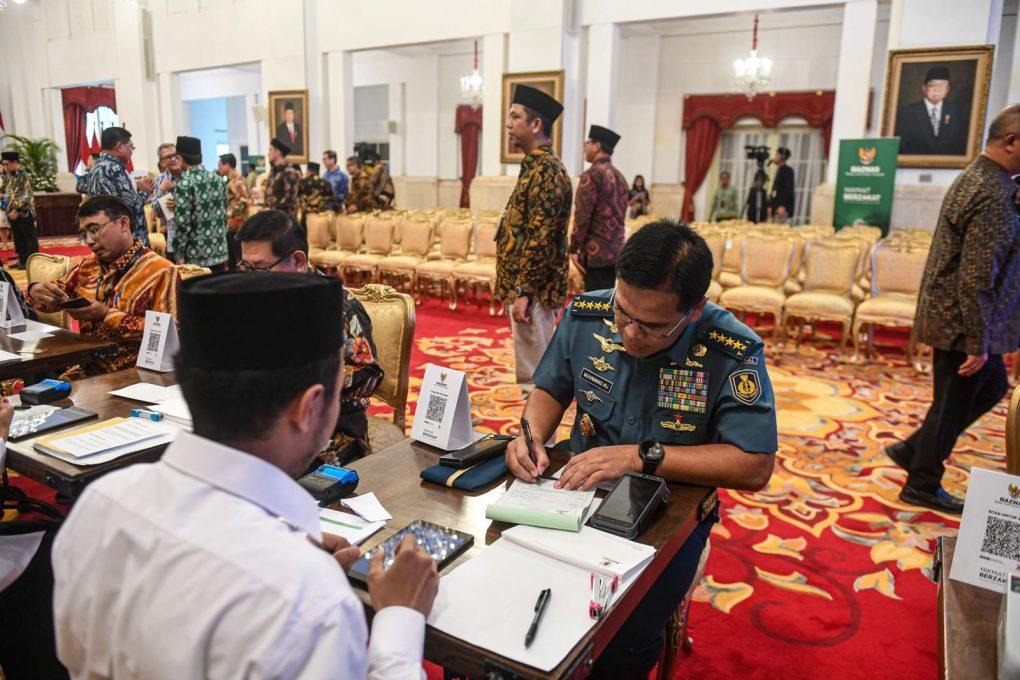 Jakarta, 13 Maret 2024,—- Dalam rangka mendukung pengelolaan zakat di tanah air, Kepala Staf Angkatan Laut (Kasal) Laksamana TNI Dr. Muhammad Ali menghadiri penyerahan zakat oleh Presiden RI Joko Widodo kepada Badan Amil Zakat Nasional (BAZNAZ) di Istana Negara, Jakarta Pusat, Rabu (13/03).