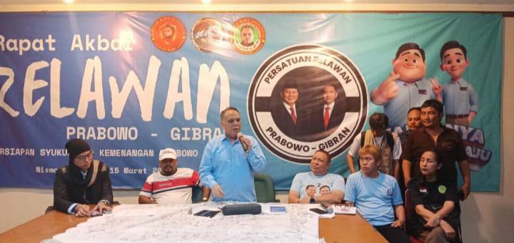Makanya,” lanjutnya,” semua relawan berkumpul disini untuk menyakinkan bahwa dibelakang Prabowo Gibran ada kita semua relawan Prabowo Gibran.