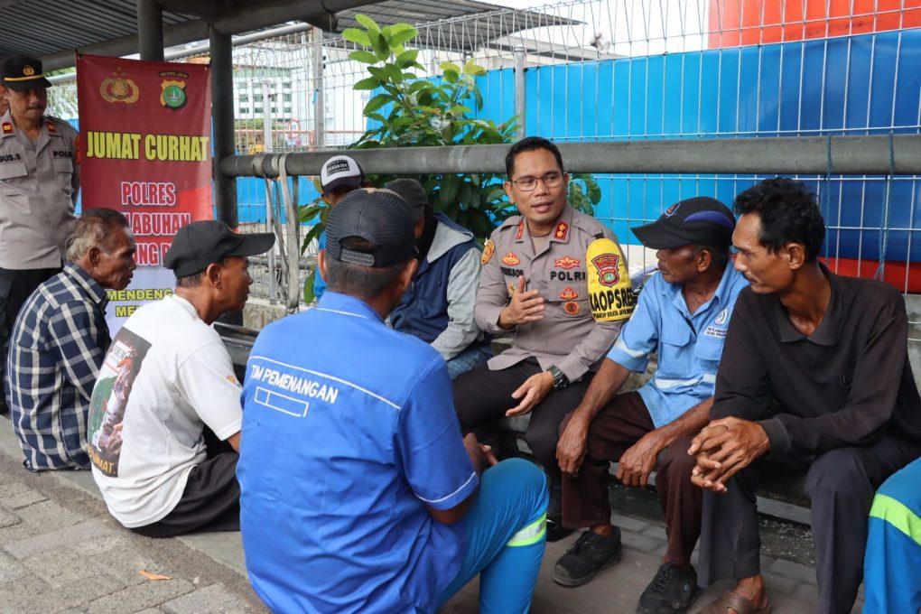 REPORTASE JAKARTAJakarta – Jumat Curhat menjadi wadah bagi para buruh dan pengemudi ojek motor di Pos VIII Pelabuhan Tanjung Priok untuk berinteraksi dan menyampaikan aspirasi kepada Kapolres Pelabuhan Tanjung Priok AKBP Ferikson Tampubolon dan Jajaranya (Jumat, 15/03/2024)