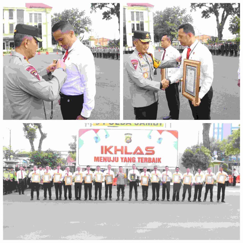 Apel pagi yang dilanjutkan dengan pemberian Penghargaan ini dihadiri Wakapolda Jambi Brigjen Pol. Edi Mardianto, Irwasda Polda Jambi Kombes Pol Jannus Parlindungan Siregar, dan Pejabat utama dan Personil Polda Jambi.