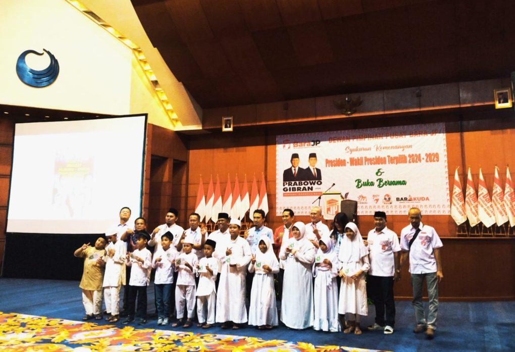 REPORTASE JAKARTAJAKARTA — Organisasi relawan BARA JP mengadakan buka puasa bersama organisasi relawan Prabowo – Gibran lainya sekaligus santunan anak yatim sebagai ucapan syukur kemenangan Prabowo – Gibran sebagai Presiden dan Wakil Presiden 2024 – 2029, Ballroom Hotel Bidakara Jakarta Selatan, Kamis (21/3/24).Disamping itu hadir Budi Arie Menteri Kominfo, Ketua Umum (BARA JP) Utje Gustaaf Patty, Yohanes Seingu Woleka (Joe) Ketua Bidang Pengawas dan Koordinasi, Yudas Pasomba (Bendahara Umum) BARA JP bersama lintas organisasi relawam pendukung Prabowo – Gibran dan puluhan anak yatim.