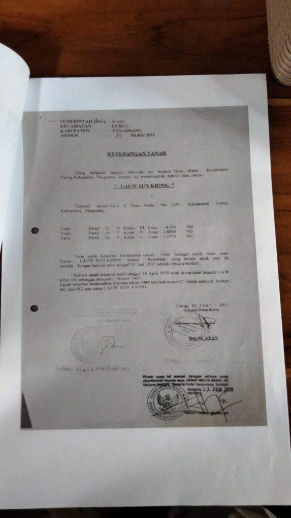 Reportasejakarta.com||Tanggerang -;Kasus dugaan mafia tanah dan penyerobotan lahan yang terletak di Desa Kadu,Kecamatan Curug, Tanggerang Selatan dengan korban Bambang Sutrisno yang diduga lahan dan aset miliknya telah di rebut oleh inisial JM telah masuk ke ranah hukum di Pengadilan Negeri Tanggerang.