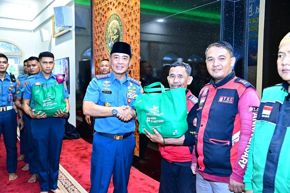 Jakarta, 2 April 2024,—- Dalam rangka mempererat silahturahmi antar elemen masyarakat, TNI Angkatan Laut (TNI AL) mengajak sebanyak 500 masyarakat pesisir dan 500 pengemudi ojek online melaksanakan buka puasa bersama Tahun 1445 H/2024 M yang berlangsung di Masjid Ar-Rahman Pasmar I, Marunda, Jakarta Utara, Selasa (02/04). Buka puasa bersama yang dihadiri Panglima Komando Armada RI (Pangkoarmada RI) Laksamana Madya TNI Denih Hendrata mewakili Kepala Staf Angkatan Laut (Kasal) Laksamana TNI Dr. Muhammad Ali ini mengangkat tema “Tingkatkan Ketaqwaan, Pererat Silaturahmi, Perkuat Persatuan Dan Kesatuan” yang bertujuan untuk mempererat hubungan silaturahmi keluarga besar TNI AL, Masyarakat pesisir dan ojek online serta meningkatkan keimanan dan ketakwaan kepada Allah SWT. Acara buka bersama diawali dengan pembacaan ayat suci Al-quran di lanjutkan dengan sambutan Kasal yang dibacakan oleh Pangkoarmada RI. Selanjutnya acara diisi dengan Tausiyah Puasa Ramadhan yang di sampaikan oleh Ustadz KH. Dr. Ali Sibromalisi, M.A. dan dilanjutkan dengan doa dan buka puasa bersama serta sholat maghrib berjamaah. Usai sholat, seluruh yang hadir melaksanakan makan bersama dengan diiringi Qosidah dan diakhiri shalat tarawih berjamaah. Selain buka puasa bersama, TNI AL juga bekerja sama dengan Badan Amil Zakat Nasional (Baznas) berkesempatan untuk memberikan 1000 paket sembako. Pada kesempatan tersebut Pangkoarmada RI menyampaikan semangat hikmah ramadhan mengajak seluruh elemen bangsa guna menambah semangat berlomba dalam memperbanyak amal ibadah untuk meningkatkan kualitas keimanan dan ketakwaan kepada Allah yang pada akhirnya akan meningkatkan kualitas jiwa sosial serta pengabdian kepada masyarakat, bangsa dan negara. “Sebagai prajurit TNI, kita juga harus selalu peka dan responsif terhadap kesulitan masyarakat agar kita senantiasa menjadi prajurit TNI AL yang mencintai rakyat dan juga dicintai oleh rakyat”, tegas Pangkoarmada RI mengakhiri sambutannya. (Red).