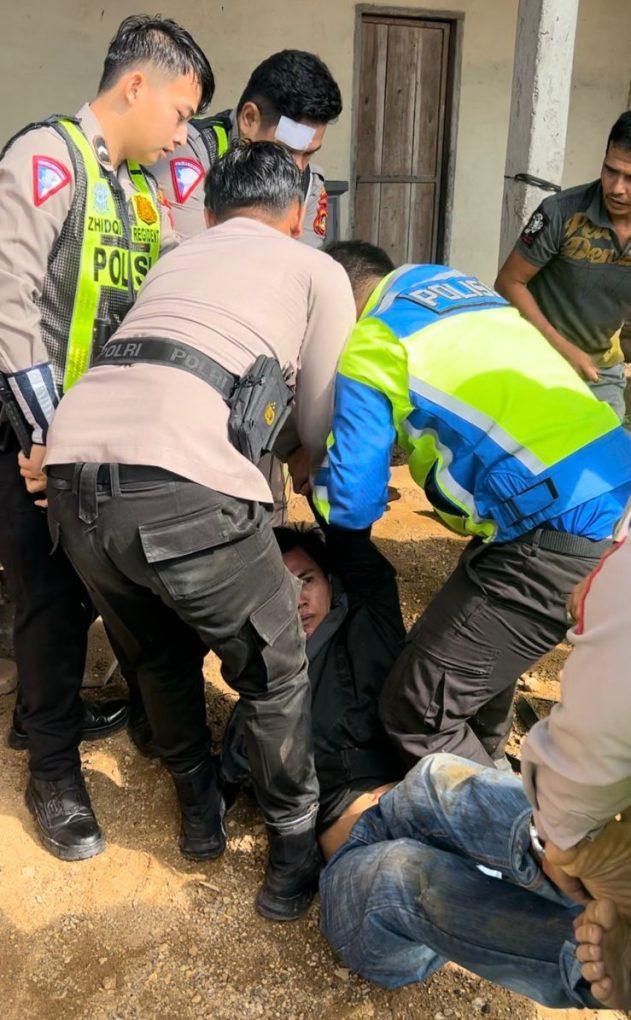 “Tak membung kesempatan, Ipda Benny Pratama bersama Bripda Riyando mengejar pelaku menggunakan sepeda motor, empat petugas lainnya menggunakan kendaraan roda empat. Sesampainya di simpang Karang Jaya, diduga pelaku tidak menguasai kendaraannya sehingga tergelincir dan jatuh. Tqk mau menyerah, pelaku justru melarikan diri ke perkampungan warga. Petugaspun berhasil mengamankan salah satu pelaku berinisial