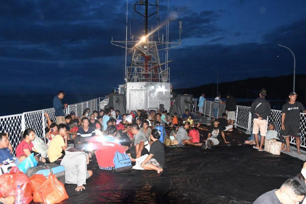 Selain pemberian bantuan, TNI AL juga mengerahkan sejumlah prajuritnya untuk mengevakuasi masyarakat yang terdampak bencana. Hingga saat ini sebanyak 195 orang warga Tagulandang telah di evakuasi dalam KRI Kakap-811, yang selanjutnya akan dibawa menuju Bitung.
