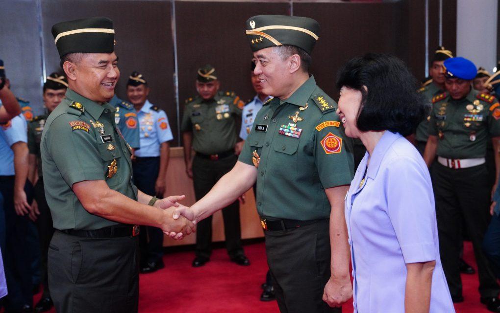Kemudian acara dilanjutkan dengan pemberian ucapan selamat dari Kasum TNI Letjen TNI Bambang Ismawan kepada Pati yang naik pangkat, diikuti oleh para tamu undangan.