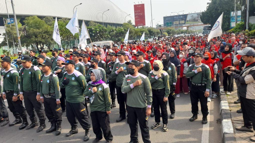 Ribuan buruh Kota Bekasi dari berbagai serikat sendiri telah berkumpul sejak pagi hari dari beberapa titik di Kota Bekasi. (RED).
