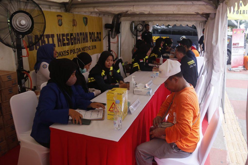 ‘’Petugas Kesehatan dari Biddokes Polda Metro Jaya ini terdiri dari Dokter, tenaga kesehatan, perawat yang bekerja sama dengan teman-teman dari BPJS dan Kimia Farma yang bertugas melayani, apabila teman-teman buruh ada yang merasa kurang sehat begitu juga dengan petugas- petugas kami di lapangan, Ada sekitar 150 rekan-rekan buruh yang dilayani melaksanakan pengecekan kesehatan secara konsultasi, pengecekan gula darah, tensi, juga kita menyiapkan untuk evakuasi darurat ada 2 ambulans, kemudian mobil home visit’’. Pungkasnya. (Red).