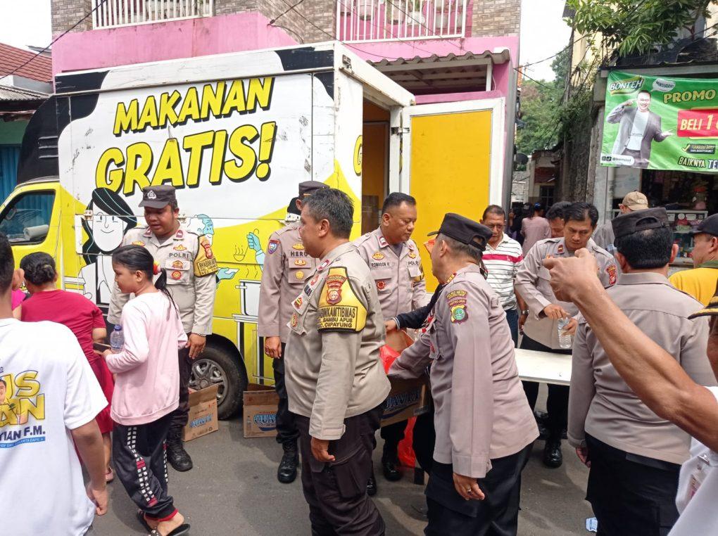 โPembagian Nasi box gratis dan air mineral sebanyak 300 box dibagikan langsung kepada warga,โ jelas Wakasat Binmas didampingi Plh Kapolsek Cipayung AKP Maryoto, S.H., M.H.