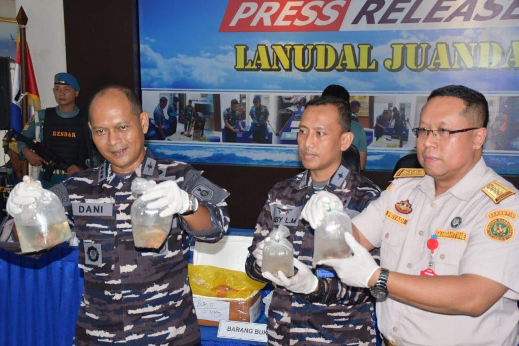 JAKARTA, 12 Mei 2024,—— TNI Angkatan Laut (TNI AL) dalam hal ini Satuan Tugas Pengamanan (Satgaspam) TNI AL Bandara Juanda telah berhasil menggagalkan upaya pengiriman terumbu karang secara ilegal sebanyak 8 box dengan total 81 kantong tujuan Malaysia melalui ekspedisi yang akan dikirimkan via udara melalui ke Batam di Kargo T1 Bandara Internasional Juanda, Surabaya, Jawa Timur, Sabtu (11/05) kemarin. Kronologi bermula ketika Satgaspam TNI AL mendapat informasi bahwa terdapat paket yang ditolak dengan alasan mencurigakan karena diduga terindikasi mirip seperti hewan laut. Merespon informasi tersebut, tim bergerak dan melaksanakan pemeriksaan terhadap barang tersebut melalui X-Ray dan ditemukan adanya ketidaksesuaian antara dokumen pengiriman barang dengan isi barang. Data dokumen barang yang merupakan makanan ringan (Snack) ternyata hasil X-Tray menyerupai benda hidup. Dikarenakan mencurigakan, pemeriksaan dilanjutkan dengan pengecekan secara manual oleh petugas Bandara dan didapati hasil box berisikan terumbu karang yang berada dalam kemasan plastik beserta air. Kemudian, Satgaspam Lanudal Juanda melaksanakan pendalaman dan berkoordinasi dengan pihak terkait sehingga berhasil mengamankan 1 orang terduga pelaku berinisial JJS yang berusia 27 tahun merupakan warga Surabaya dan diamankan di Denpom Lanudal Juanda karena telah melanggar hukum dimana pengiriman terumbu karang ke luar negeri tanpa dilengkapi dokumen sah adalah ilegal, sesuai UU Nomor 21 Tahun 2019 tentang Karantina Hewan, Ikan dan Tumbuhan, Selanjutnya untuk barang bukti dengan jumlah total 81 kantong terumbu karang dengan jenis Acanthophilia & Euphyllia Glabressein yang masih hidup dilaksanakan penanganan secara intensif oleh BKSDA agar tetap hidup sampai dengan dilepaskan kembali. Komandan Lanudal Kolonel Laut (P) Dani Achnisundani menyampaikan bahwa “Lanudal Juanda, Satgaspam Bandara, Avsec dan seluruh Stakeholders berkomitmen bersama akan terus berupaya melaksanakan tindakan cegah dini dan siaga selalu dalam mencegah terjadinya upaya-upaya pelanggaran hukum di wilayah Bandara Internasional Juanda”. Keberhasilan dalam menggagalkan upaya penyelundupan barang ilegal ini merupakan implementasi dari perintah Kepala Staf Angkatan Laut (Kasal) Laksamana TNI Dr. Muhammad Ali kepada seluruh jajaran TNI AL untuk meningkatkan kewaspadaan dan kesiapsiagaan dalam merespon cepat informasi yang diterima, serta bersinergi dengan stakeholder terkait di wilayah kerja kerjanya. (Red).