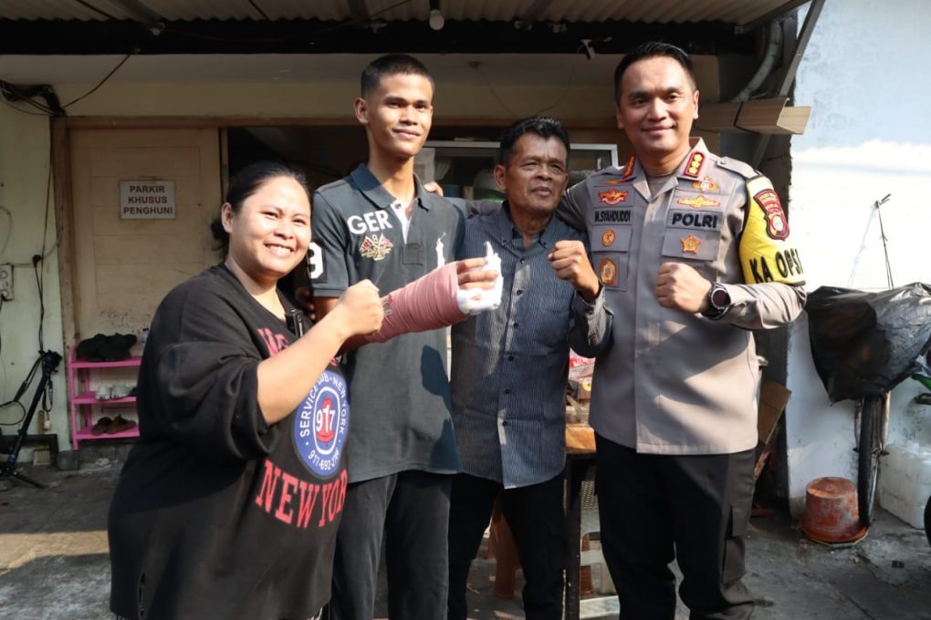 REPORTASE JAKARTAJakarta Barat – Kapolres Metro Jakarta Barat, Kombes Pol M Syahduddi, mengunjungi calon siswa (Casis) Bintara Polri yang menjadi korban begal, Satrio Mukti (19), di kediamannya di Jalan Arjuna, Kebon Jeruk, Jakarta Barat.
