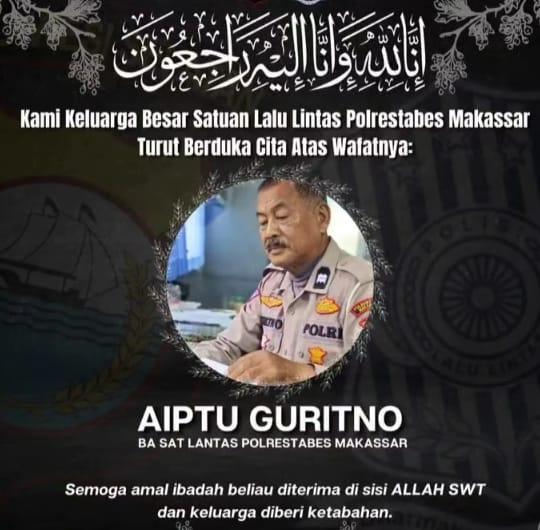 REPORTASE JAKARTA Makassar Sulsel — Segenap Jajaran Media Partner Group ( MPG ) Mengucapkan Turut Berbela Sungkawa Yang Mendalam Atas Berpulangnya Kerahmatullah Bapak Aiptu Guritno Salah Satu Anggota Satlantas Polrestabes Makassar Diusia Kurang Lebih 58 Tahun.