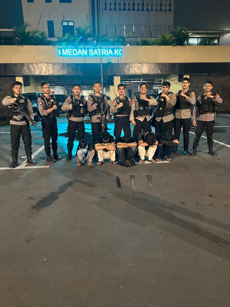 “Tim berhasil mengamankan 5 (lima) remaja dan mengintrogasi, Didapati 3 [tiga] buah sajam jenis golok yang di buang di Tempat Pemakaman Umum,” Imbuhnya.