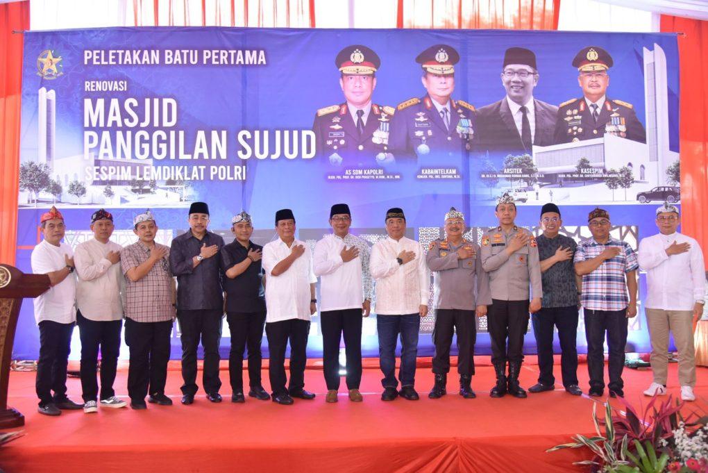 REPORTASE JAKARTAJAKARTA — (2 Juni 2024) Komjen. Pol. Drs. Suntana, M.Si. Kepala Badan Intelijen dan Keamanan Polri, As SDM Kapolri Irjen Pol. Prof. Dr. Dedi Prasetyo, M.Hum., M.Si., M.M. Kasespim Lemdiklat Polri Irjen Pol. Prof Dr Chryshnanda Dwilaksana, M.Si , Bersama Alumni Akpol Angkatan 1990 Batalyon Dhira Brata, Karo Watpers SSDM Polri Brigjen. Pol. Anwar S.I.K. M.Si. melaksanakan peletakan batu pertama MASJID PANGGILAN SUJUD SESPIM LEMDIKLAT POLRI yang dibangun pada tahun 1960 yang terakhir kali direnovasi pada tahun 2018 sewaktu Pakasespim nya IJP Drs. Wahyu Indra Pramugari, MH.