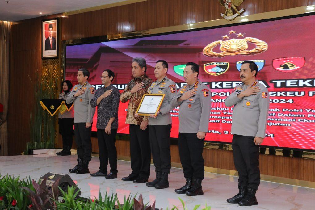 JAKARTA – Kapolri Jenderal Polisi Listyo Sigit Prabowo, membuka rakenis gabungan 4 satuan kerja (satker) Polri yakni Pusdokkes, Puskeu, Puslitbang, dan Pusjarah di Rupattama Mabes Polri, Jakarta, Senin (3/6/2024) sore.