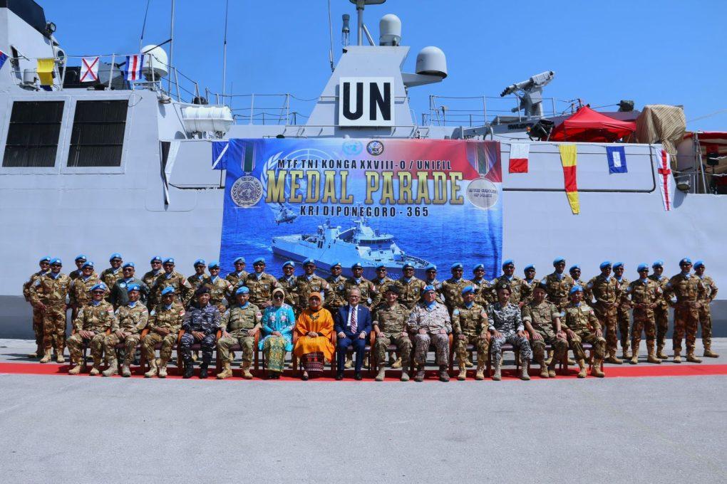 Jakarta, 13 Juni 2024,— KRI Diponegoro-365 (KRI DON-365) yang saat ini tergabung dalam Satgas Maritime Task Force (MTF) TNI Konga XXVIII-O/UNIFIL, menerima penghargaan tertinggi “United Nations Medal” yang diselenggarakan dalam suatu upacara militer “Medal Parade” di dermaga no. 4 Beirut, Lebanon pada Rabu (12/06). Medal Parade dipimpin langsung oleh MTF Commander, RADM Dirk Gaertner yang berkebangsaan Jerman dan dihadiri oleh beberapa pejabat dari sipil maupun militer diantaranya adalah Bapak Duta Besar LBBP RI untuk Lebanon H.E. Hajriyanto Y. Thohari, LAF Navy Commander ADM Haissam Dannoui serta Asops Kasal, Laksda TNI Yayan Sofiyan. Upacara penyematan medali UN ini dirangkai dengan kegiatan resepsi di atas geladak heli KRI DPN-365 yang menampilkan beraneka macam kuliner nusantara dan memperkenalkan budaya dari berbagai daerah di Indonesia. Komandan KRI DPN-365, Letkol Laut (P) Wirastyo Haprabu, menjelaskan bahwa Medal Parade ini selain penganugerahan penghargaan tertinggi bagi personel militer yang telah bertugas dalam melaksanakan misi perdamaian, juga sebagai bentuk apresiasi yang sangat tinggi kepada KRI Diponegoro atas kesiapan teknis, profesionalisme prajurit serta pencapaian operasi yang sampai dengan saat ini dinilai mampu memenuhi segala tuntutan tugas yang di emban dalam misi UNIFIL. Pemberian United Nations Medal bagi seluruh prajurit Satgas MTF TNI Konga XXVIII-O/UNIFIL menunjukkan bukti nyata akan profesionalisme TNI dalam menghadapi perkembangan situasi yang sangat kompleks dan dinamis terutama di daerah misi perairan Lebanon dimana sesuai dengan visi Panglima TNI “PRIMA”. Pada kesempatan terpisah, Kepala Staf Angkatan Laut (Kasal) Laksamana TNI Dr. Muhammad Ali menyampaikan apresiasi atas pencapaian yang telah diraih oleh prajurit Jalasena yang tengah menjalankan misi perdamaian dunia. Tak lupa Kasal menekankan kepada seluruh prajurit untuk selalu memberikan yang terbaik dalam setiap tugas yang diamanahkan, serta menjaga nama baik TNI, khususnya TNI AL di mata dunia. (Red).