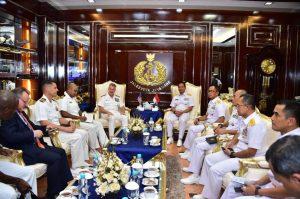 Jakarta, 13 Juni 2024,—— Wakil Kepala Staf Angkatan Laut (Wakasal) Laksamana Madya TNI Erwin S. Aldedharma mewakili Kepala Staf Angkatan Laut (Kasal) Laksamana TNI Dr. Muhammad Ali menerima kunjungan kehormatan Panglima Komando Indo-Pasifik Amerika Serikat atau US Indo-Pacific Command (INDOPACOM) Commander, Admiral Samuel J. Paparo di Ruang Admiral Markas Besar Angkatan Laut (Mabesal) Cilangkap, Jakarta Timur, Kamis (13/06). Kedatangan Admiral Samuel J. Paparo dan rombongan di halaman Gedung R.E Martadinata Mabesal disambut hangat oleh Wakasal Laksamana Madya TNI Erwin S. Aldedharma beserta jajarannya dengan pasukan jajar kehormatan. Hubungan kerja sama TNI Angkatan Laut (TNI AL) dan US Navy telah terjalin sangat baik dalam berbagai bidang dalam rangka peningkatan capacity building diantaranya bidang operasi dan latihan, bidang operasi dan latihan Korps Marinir, komunikasi, pendidikan, logistik dan kesehatan. Dalam hubungan bidang operasi dan latihan, Wakasal menyampaikan apresiasi dan terimakasih atas partisipasi pihak US Navy pada event internasional yang diselenggarakan oleh TNI AL diantaranya Multilateral Naval Exercise Komodo (MNEK) dan International Maritime Security Symposium (IMSS) di Makassar tahun 2023. Selanjutnya mengundang kembali partisipasi US Navy pada MNEX ke-5 dan IMSS ke-6 yang akan diselenggarakan di Bali pada tahun 2025 mendatang. Kegiatan kunjungan kehormatan ini diakhiri dengan saling bertukar cendera mata dan Wakasal berharap hubungan TNI AL dengan US Navy dapat terus di tingkatkan. (Red).
