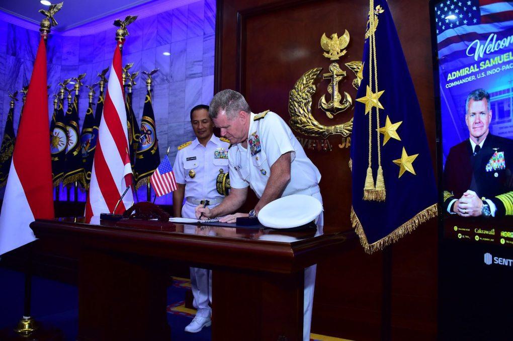 Jakarta, 13 Juni 2024,—— Wakil Kepala Staf Angkatan Laut (Wakasal) Laksamana Madya TNI Erwin S. Aldedharma mewakili Kepala Staf Angkatan Laut (Kasal) Laksamana TNI Dr. Muhammad Ali menerima kunjungan kehormatan Panglima Komando Indo-Pasifik Amerika Serikat atau US Indo-Pacific Command (INDOPACOM) Commander, Admiral Samuel J. Paparo di Ruang Admiral Markas Besar Angkatan Laut (Mabesal) Cilangkap, Jakarta Timur, Kamis (13/06). Kedatangan Admiral Samuel J. Paparo dan rombongan di halaman Gedung R.E Martadinata Mabesal disambut hangat oleh Wakasal Laksamana Madya TNI Erwin S. Aldedharma beserta jajarannya dengan pasukan jajar kehormatan. Hubungan kerja sama TNI Angkatan Laut (TNI AL) dan US Navy telah terjalin sangat baik dalam berbagai bidang dalam rangka peningkatan capacity building diantaranya bidang operasi dan latihan, bidang operasi dan latihan Korps Marinir, komunikasi, pendidikan, logistik dan kesehatan. Dalam hubungan bidang operasi dan latihan, Wakasal menyampaikan apresiasi dan terimakasih atas partisipasi pihak US Navy pada event internasional yang diselenggarakan oleh TNI AL diantaranya Multilateral Naval Exercise Komodo (MNEK) dan International Maritime Security Symposium (IMSS) di Makassar tahun 2023. Selanjutnya mengundang kembali partisipasi US Navy pada MNEX ke-5 dan IMSS ke-6 yang akan diselenggarakan di Bali pada tahun 2025 mendatang. Kegiatan kunjungan kehormatan ini diakhiri dengan saling bertukar cendera mata dan Wakasal berharap hubungan TNI AL dengan US Navy dapat terus di tingkatkan. (Red).