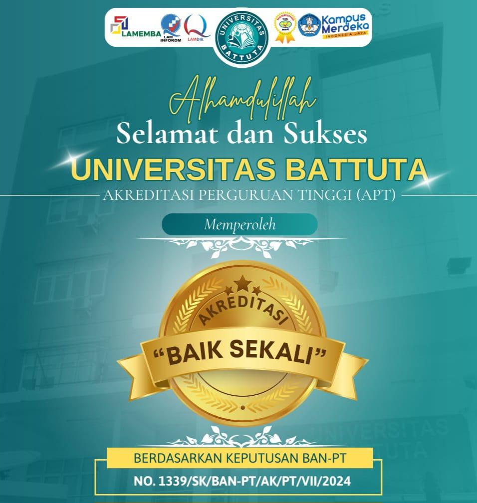 Perlu diketahui BAN-PT atau Badan Akreditasi Nasional Perguruan Tinggi merupakan satu-satunya badan akreditasi yang memperoleh wewenang dari Kementerian Riset, Teknologi dan Pendidikan Tinggi Republik Indonesia dalam meningkatkan mutu pendidikan tinggi, memperkenalkan serta menyebarluaskan “Paradigma Baru dalam Pengelolaan Pendidikan Tinggi”, dan meningkatkan relevansi, atmosfer akademik, pengelolaan institusi, efisiensi dan keberlanjutan pendidikan tinggi. Sebelum mendapatkan sertifikat ini,Universitas Batutta pada tanggal 1 sampai 3 Juli 2024 diaudit oleh pihak BAN-PT.Dari hasil asesor inilah keluar akreditasi nya yaitu Baik Sekali.Para aksesor itu adalah:Prof.Dr.Herri.SE.MBA dari Universitas Andalas,Prof.Dr.rer.nat.Achmad Benny Mutiara,S.Si.S.kom dari Universitas Gunadarma dan Pro.Dr.Mella Ismelina,F.R,SH,M.Hum dari Universitas Tarumanegara. Dikutip dari Bab Pendahuluan Lampiran Peraturan Badan Akreditasi Nasional Perguruan Tinggi Nomor 3 Tahun 2019 tentang Instrumen Akreditasi Perguruan Tinggi, akreditasi merupakan salah satu bentuk penilaian (evaluasi) kelayakan dan mutu perguruan tinggi atau program studi yang dilakukan oleh organisasi atau badan mandiri di luar perguruan tinggi. Bentuk penilaian mutu eksternal yang lain adalah penilaian yang berkaitan dengan akuntabilitas, pemberian izin, pemberian lisensi oleh badan tertentu. Tujuan dan manfaat akreditasi perguruan tinggi adalah sebagai berikut: Memberikan jaminan bahwa perguruan tinggi yang terakreditasi telah memenuhi kriteria mutu yang ditetapkan oleh BAN-PT, sehingga mampu memberikan perlindungan bagi masyarakat dari penyelenggaraan perguruan tinggi yang tidak memenuhi kriteria.
