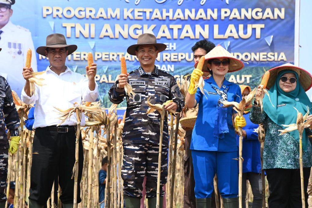 dihadiri oleh Ketua Komisi 4 DPR RI Bapak Sudin S.E dan PJ. Gubernur Lampung, Dr. Drs. Syamsudin, dilaksanakan pemberian sembako & perlengkapan alat sekolah kepada masyarakat dan acara simbolis pemberian bantuan ketahanan pangan oleh Menteri Pertanian, serta mobil ambulance dari PJ Gubernur Lampung kepada Wakasal. Kegiatan diakhiri dengan vicon dengan satkowil jajaran TNI AL. Lahan ketahanan pangan milik TNI AL yang dikelola Lanal Lampung dan Brigif 4 Marinir berjumlah 1.182 hektar terdiri dari lahan jagung 42 hektar, lahan padi 250 hektar, lahan holtikultura 3 hektar, dan lahan perkebunan pisang, alpokat dan kelapa 262 hektar. TNI AL bersinergi dengan Kementerian Pertanian berusaha menyukseskan program pemerintah guna menjamin ketersediaan pangan dengan mengaktifkan lahan tidur menjadi lahan produktif serta memberdayakan masyarakat sekitar guna meningkatkan kesejahteraan masyarakat dengan peningkatan persediaan pangan. Dalam rangkaian panen raya ini, juga diselenggarakan berbagai kegiatan Bakti Sosial dan Bakti Kesehatan seperti pengobatan umum, gigi,donor darah,khitan massal dan penyuluhan stunting anak kepada masyarakat sekitar dengan melibatkan tenaga medis gabungan yang melibatkan TNI-Polri, Dinas Kesehatan (Dinkes) dan PMI Provinsi Lampung. (Red).