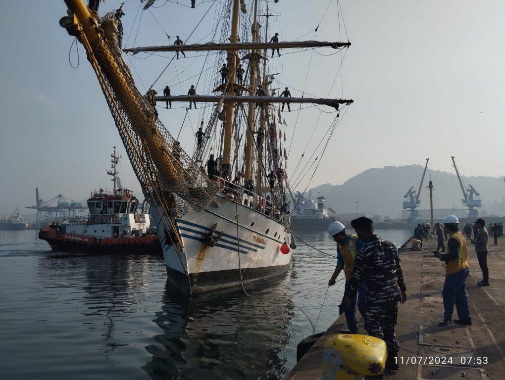 Jakarta, 11 Juli 2024,—— Dalam rangka melaksanakan Muhibah Budaya Jalur Rempah (MBJR) tahun 2024, KRI Dewaruci yang merupakan Kapal Perang Legendaris TNI AL tiba di Perairan Lampung tepatnya di Pelabuhan Panjang, Kota Bandar Lampung. Kamis (11/07). Kedatangan KRI Dewaruci di Lampung ini disambut dengan marching band SMKN 6 Bandar Lampung Serta disambut dengan payung agung dan kebesaran adat serta kesenian budaya Lampung. Turut hadir dalam penyambutan KRI Dewaruci dan Laskar Rempah antara lain Komandan Lanal Lampung yang diwakili Pasops Lanal Lampung, Mayor Laut (P) Agus Triyono beserta jajaran Lanal Lampung, serta PJ. Gubernur Lampung yang diwakili oleh Staf Ahli Bidang Pemerintahan, Hukum, dan politik, Ganjar Jationo, Wakapolresta Bandar Lampung AKBP Erwin Irawan, S.Ik., GM Pelindo Regional II Panjang diwakilkan oleh Spv PFOS Imam Rahmiyadi, Ka. KSOP Pelabuhan Panjang diwakilkan oleh AKP Joko, serta Kadis Perhubungan Provinsi Lampung. Pj Gubernur Lampung yang diwakili Asisten Bidang Pemerintahan, Politik dan Hukum, Ganjar Jationo dalam sambutannya menyampaikan selamat datang kepada tim muhibah budaya jalur rempah KRI Dewaruci dan Laskar rempah di Provinsi Lampung, sejak Tanggal 7 Juni 2024 KRI Dewaruci telah melakukan perjalanan melalui rute yang meliputi beberapa tempat penting mulai dari Jakarta – Belitung Timur – Dumai – Siak – Sabang – Aceh – Malaka – Tanjung Uban – Lampung – Jakarta. “Perjalanan ini tidak hanya penghormatan terhadap sejarah perdagangan rempah-rempah yang menjadi bagian dari sejarah kita, tetapi juga sebagai langkah konkrit untuk memperkuat ketahanan budaya dan mempromosikan Indonesia sebagai poros maritim dunia”, jelas Ganjar Jationo. Kehadiran KRI Dewaruci dan para Laskar Rempah merupakan simbol dari kekayaan sejarah maritim dan budaya nusantara yang menjadi warisan berharga bagi bangsa ini. Mereka adalah perwakilan dari perjalanan berabad-abad yang dilakukan oleh para pahlawan-pahlawan laut kita dalam menjelajahi jalur rempah yang menghubungkan bangsa-bangsa di seluruh dunia. Pada kesempatan terpisah, Kepala Staf Angkatan Laut (Kasal) Laksamana TNI Dr. Muhammad Ali menjelaskan bahwa tujuan dari muhibah ini yaitu memperkenalkan kembali kejayaan maritim bangsa Indonesia, melestarikan budaya dan tradisi jalur rempah, memperkuat hubungan diplomasi antar negara tetangga, serta meningkatkan promosi pariwisata maritim Indonesia. “Saya berharap kepada seluruh personel yang terlibat untuk mempedomani prinsip zero accident serta memegang teguh prosedur keamanan baik personel maupun material”, pesan Kasal. KRI Dewaruci direncanakan sandar selama empat hari mulai tanggal 11 sampai dengan 15 Juli 2024 dan akan menggelar Open Ship untuk masyarakat. (Red).