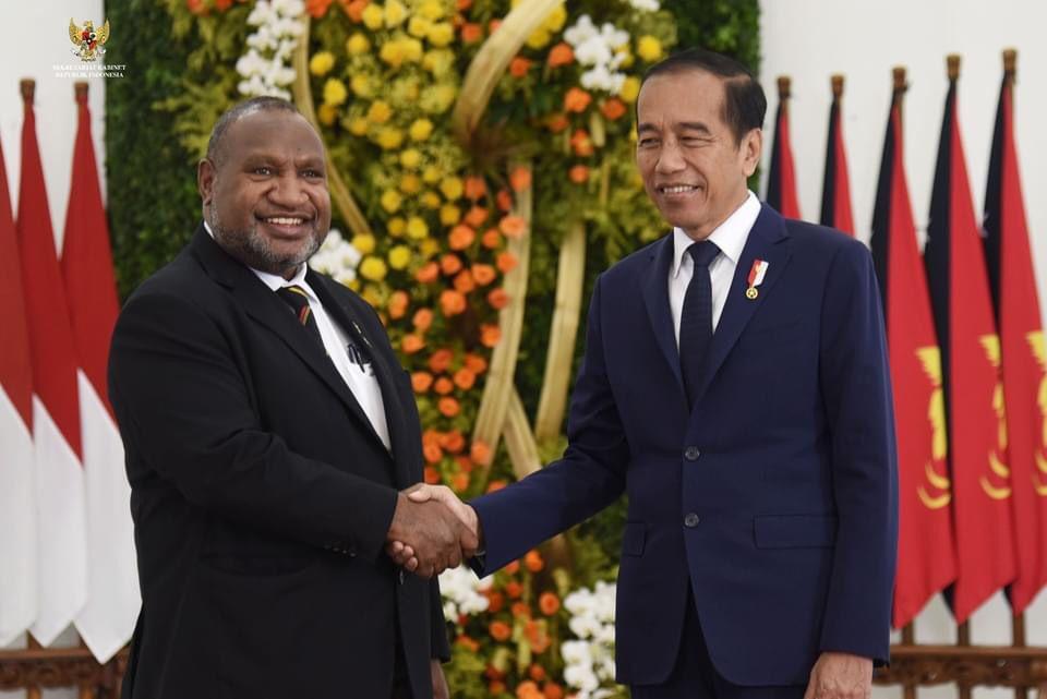 JAKARTA — Hari ini Presiden Joko Widido menerima kunjungan Perdana Menteri (PM) Papua Nugini, James Marape dan delegasi. Pertemuan ini membahas kerja sama bilateral beberapa bidang. Indonesia mengapresiasi dukungan Papua Nugini dalam meningkatkan kerja sama dengan kawasan Pasifik, termasuk Melanesian Spearhead Group (MSG) dan Pacific Islands Forum (PIF), mengingat posisi Papua Nugini sebagai tetangga dekat serta mitra strategis Indonesia.