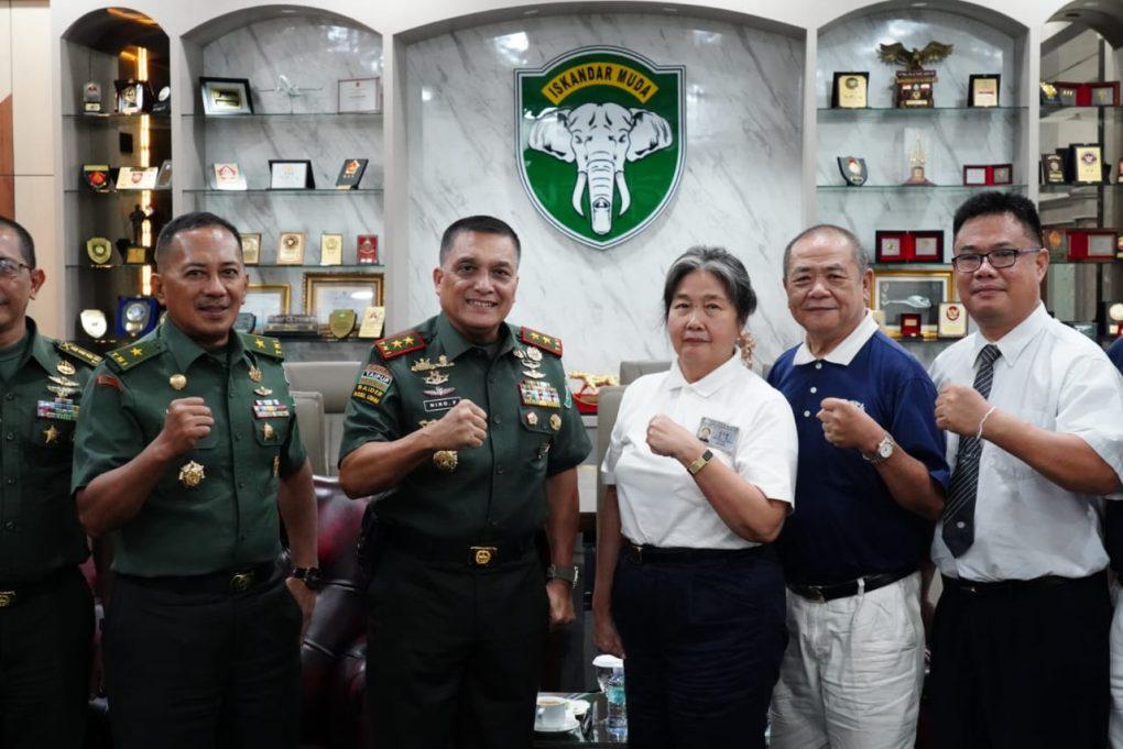Pangdam IM Mayjen TNI Niko Fahrizal, M.Tr.(Han). menyambut hangat kedatangan Ketua Tim Pengurus Yayasan Budha Tzu Chi Dr. Ruth beserta rombongan.