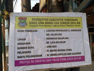 Tangerang — Pekerjaan Betonisasi pada Lanjutan Peningkatan Jalan Borobudur Kecamatan Kelapa Dua yang bersumber dari dana APBD Tahun 2024 dari Pemerintah Kabupaten Tangerang di kelola melalui Dinas Bina Marga dan Sumber Daya Air dengan anggaran sebesar Rp: 1.878. 482.000,00. (Satu Miliar delapan ratus tujuh Puluh delapan Juta Empat ratus delapan puluh dua ribu rupiah) dengan Pelaksana PT. Sentra Wahana Utama, diduga tidak sesuai Spesifikasi dan Amburadul.