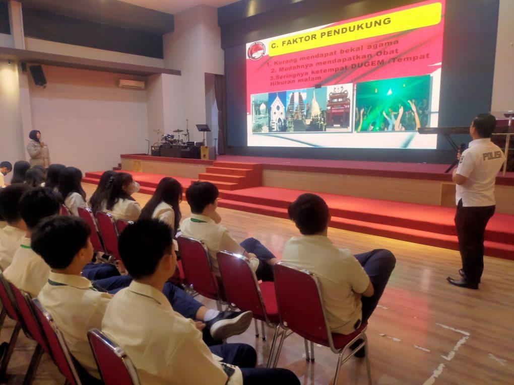 REPORTASE JAKARTAJakarta Barat, Dalam rangka Masa Pengenalan Lingkungan Sekolah (MPLS) di SMK Citra Kasih, Citra Garden 5, Pegadungan, Kalideres Jakarta Barat, Polsek Kalideres Jakarta Barat mengadakan kegiatan penyuluhan terkait penyalahgunaan dan bahaya narkoba.