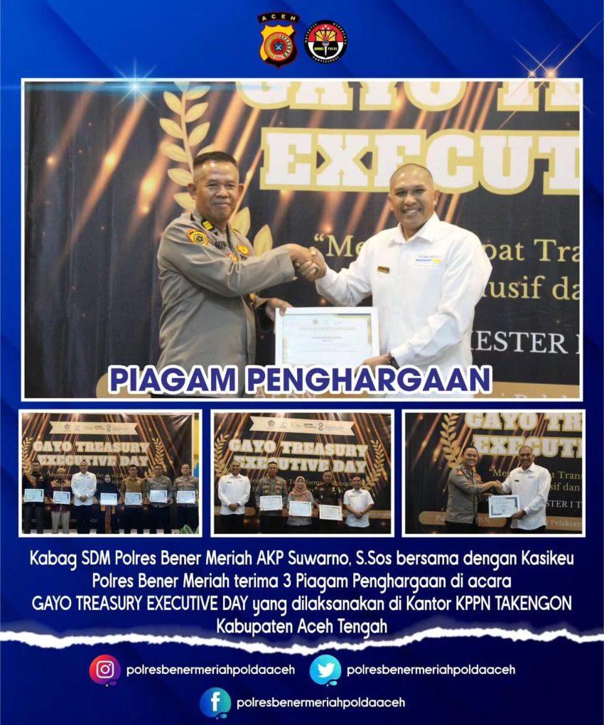 REPORTASE JAKARTARedelong – Kepolisian Resor Bener Meriah, Polda Aceh, telah mencatatkan prestasi gemilang dengan meraih tiga penghargaan sekaligus dari Kantor Pelayanan Perbendaharaan Negara (KPPN) Takengon. Penghargaan ini diserahkan dalam acara “Gayo Treasury Executive Day” yang berlangsung di aula KPPN Takengon pada Kamis, 1 Agustus 2024.