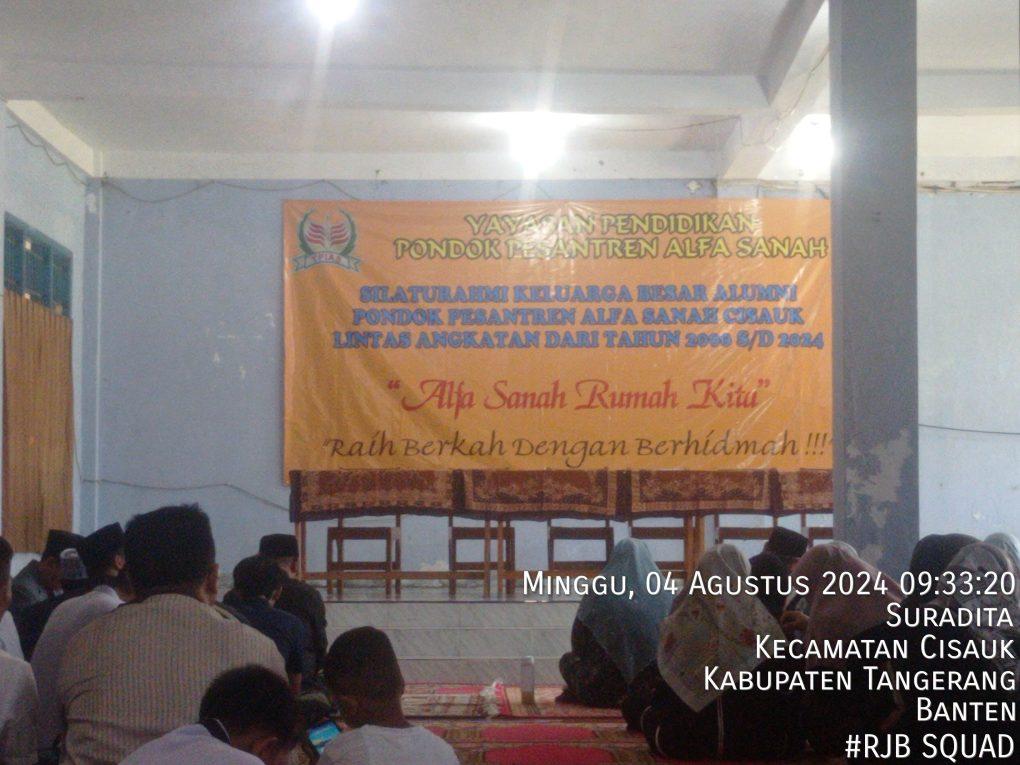 REPORTASE JAKARTATANGERANG – Silaturahmi lintas angkatan Yayasan Pondok Pesantren ALFA SANAH rumah kita, Raih berkah dengan berhidmah. Minggu, 04/08/2024