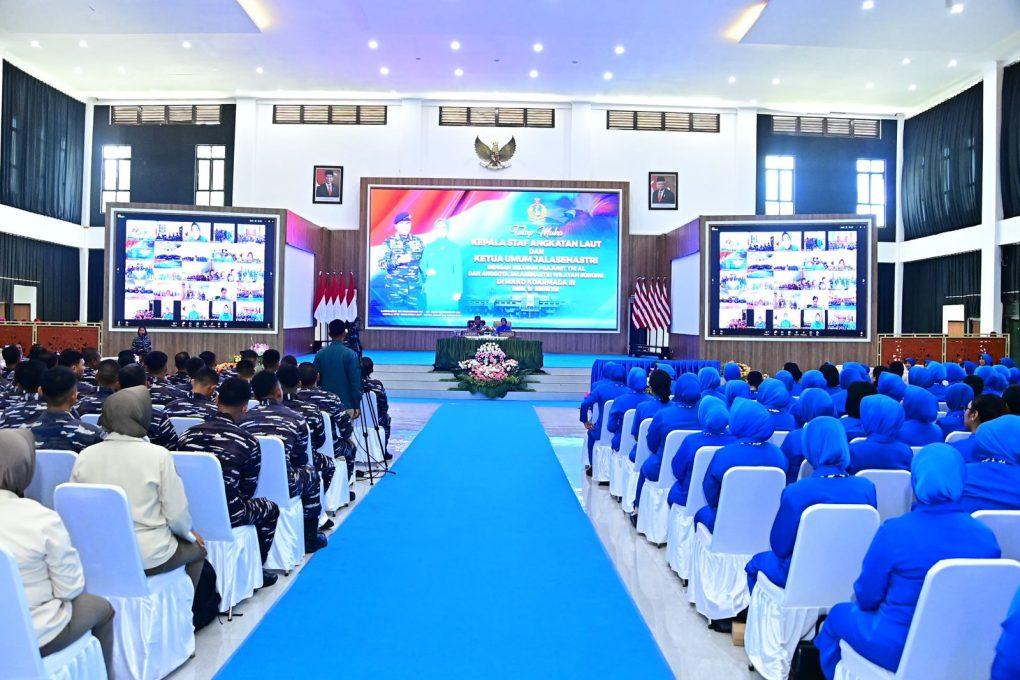 Jakarta, 8 Agustus 2024,–— “Saya ingin menjadikan momentum ini sebagai ajang silaturahmi antara atasan dan bawahan. Hal ini sangat penting agar tercipta suasana kinerja organisasi yang kondusif antara pimpinan pusat dengan daerah guna memajukan TNI AL, sebagai wadah pengabdian kita kepada bangsa dan negara.” Hal tersebut disampaikan Kepala Staf Angkatan Laut (Kasal) Laksamana TNI Dr. Muhammad Ali didampingi Ketua Umum Jalasenastri Ny. Fera Muhammad Ali dalam sambutannya saat tatap muka dan Vicon dengan prajurit dan Pegawai Negeri Sipil (PNS) TNI AL jajaran Lantamal, Lanal di bawah Koarmada III serta anggota Jalasenastri Bakor Sorong dan Korcab Jajaran Daerah Jalasenastri Armada III yang dipusatkan di Gedung Serba Guna Mas Pardi, Mako Koarmada III, Sorong, Papua, Kamis (08/08) dalam rangkaian kunjungan kerjanya di wilayah Timur. Lebih lanjut Kasal juga menyampaikan apresiasi dan rasa bangga kepada para personel yang berdinas di Papua. Walaupun dengan segala keterbatasan yang ada saat ini, para prajurit masih tetap semangat menunjukkan loyalitas dan dedikasi sebagai prajurit pengawal samudera di wilayah Timur Indonesia. Kehadiran pimpinan tertinggi TNI AL beserta seluruh rombongan ini merupakan wujud perhatian pimpinan kepada para prajurit satuan-satuan TNI AL yang ada di Papua. Kedatangan Kasal Laksamana TNI Dr. Muhammad Ali beserta Ketua Umum Jalasenastri Ny. Fera Muhammad Ali Dalam kunjungan kerjanya di Mako Koarmada III tersebut disambut dengan tarian penyambutan dan tradisi injak piring piring. Selain bertatap muka, juga dilaksanakan sesi tanya jawab prajurit TNI AL jajaran Koarmada III dan anggota Jalasenastri Bakor Sorong dan Korcab Jajaran Daerah Jalasenastri Armada III. Saat tatap muka, para prajurit diberikan kesempatan untuk menyampaikan pendapat dan saran mereka selama berdinas di wilayah Koarmada III. Kesempatan tersebut disambut antusias oleh para prajurit seperti kurangnya sarana prasarana berupa hunian. Dalam kesempatan tersebut Kasal menyampaikan akan menyiapakan fasilitas hunian tersebut pada tahun 2025 mendatang. Seusai tatap muka, kegiatan dilanjutkan dengan peresmian sejumlah fasilitas satuan TNI AL, yaitu Gedung Satuan Komando Pasukan Katak (Satkopaska) Koarmada III dan Fasilitas Prajurit berupa Flat T-45 Lantamal XIV Sorong yang akan digunakan sebagai Gedung Mess Perwira serta penandatanganan prasasti pembangunan Halang Rintang yang rencananya akan dibangun di Satuan Pendidikan (Satdik) 3 Kodiklatal. Gedung Satkopaska yang diresmikan merupakan bangunan 2 lantai dengan luas 1.411 meter persegi dan memiliki panjang 50,4 meter dengan lebar 14 meter. Sedangkan Gedung Mess Perwira meliputi bangunan 2 lantai seluas 2.074 meter persegi dengan total ruangan didalamnya sejumlah 24 unit bertipe 45. Selain itu, penandatanganan prasasti fasilitas pendidikan berupa Halang Rintang yang rencananya akan dibangun di Satdik 3 yang merupakan implementasi dari komitmen TNI AL dalam Pembangunan Sumber Daya Manusia (SDM) yang berkualitas dalam mencetak prajurit Jalasena TNI AL yang professional dan tangguh. Kasal juga menekankan kepada seluruh prajurit sebagai pedoman dalam bertugas di kedinasan maupun kehidupan berkeluarga terkait budayakan pola hidup sederhana dengan tidak bergaya hidup mewah/hedonis, gunakan medsos dengan bijak, tetap menjaga netralitas TNI dan jaga stabilitas keamanan di Papua, waspadai untuk tidak terjebak pinjaman, judi dan game online serta menciptakan suasana yang nyaman dalam rumah tangga. (Red).