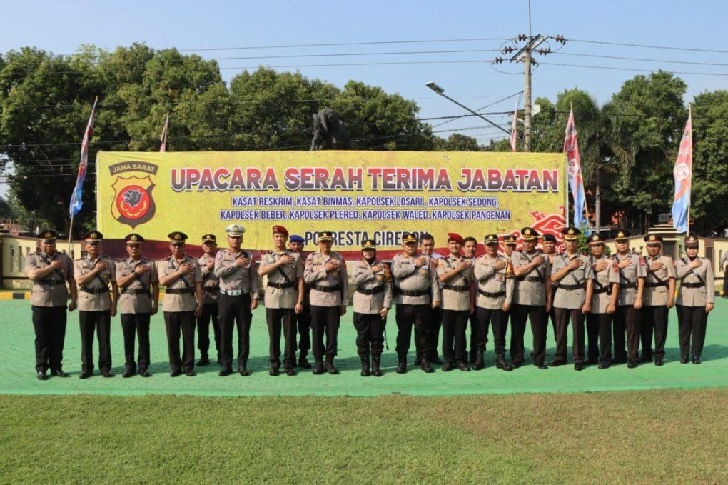 Jabatan Kapolsek Beber diserahterimakan dari AKP EDDIE MULYONO, S.H., kepada AKP MOCHAMAD ACHIR, S.H., Kapolsek Waled dari AKP KENTAR BUDI SEDIYONO, S.H., kepada IPTU MOCHAMAD FADHOLI, S.H., Kapolsek Plered dari AKP UTON, SUHARTONO, S.H., kepada AKP KENTAR BUDI SEDIYONO, S.H., dan Kapolsek Pangenan dari AKP SUKENDRI kepada AKP ABDUL MAJID, S.H.