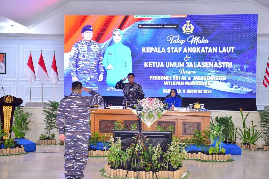 REPORTASE JAKARTAJalesveva Jayamahe,Jakarta, 10 Agustus 2024,-— Kepala Staf Angkatan Laut (Kasal) Laksamana TNI Dr. Muhammad Ali didampingi Ketua Umum (Ketum) Jalasenastri Ny. Fera Muhammad Ali melaksanakan kunjungan kerja ke Pangkalan Utama TNI AL VI (Lantamal VI) Makassar, Jumat (09/08). Dalam kesempatan ini pimpinan TNI AL itu melaksanakan tatap muka dengan seluruh prajurit TNI AL yang bertugas di wilayah Makassar.